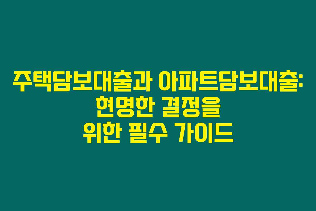 주택담보대출과 아파트담보대출: 현명한 결정을 위한 필수 가이드