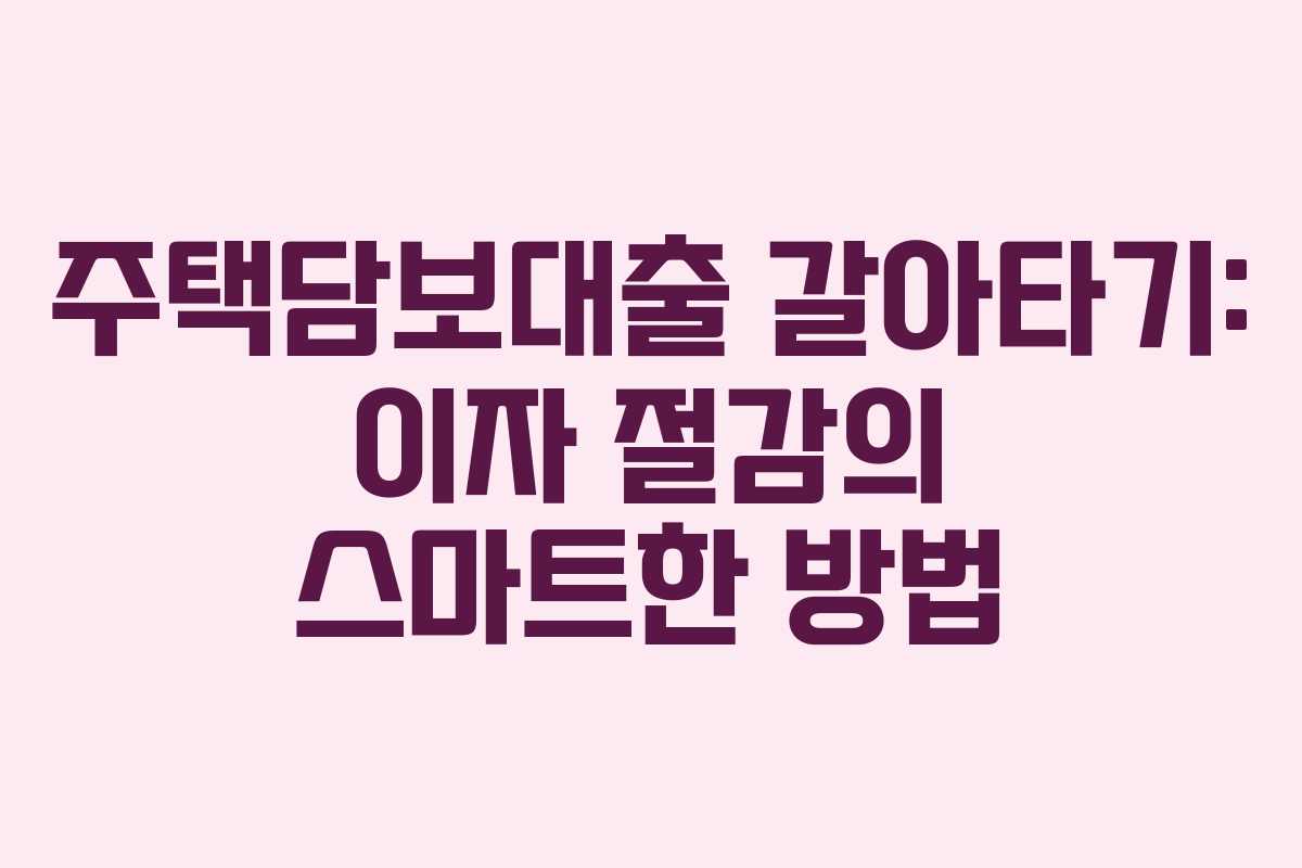 주택담보대출 갈아타기: 이자 절감의 스마트한 방법