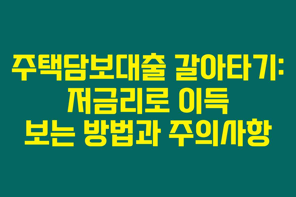 주택담보대출 갈아타기: 저금리로 이득 보는 방법과 주의사항