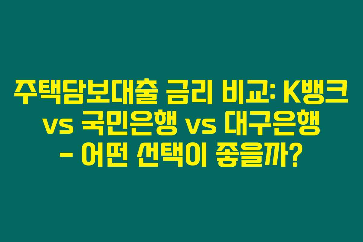 제가 직접 경험해본 결과로는, 주택담보대출 금리를 비교하는 것은 정말 중요하더라고요. 특히 K뱅크, 국민은행, 대구은행의 금리를 살펴보니 각 은행마다 차이가 크게 나다 보니 심사숙고하게 되었어요. 아래를 읽어보시면 주택담보대출 선택 시 고려해야 할 여러 정보와 팁을 확인하실 수 있을 거예요.