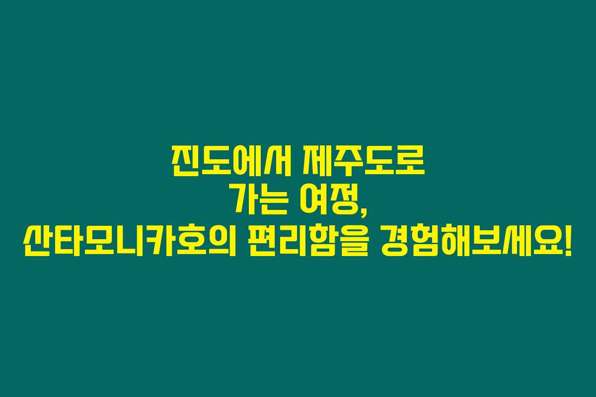 여행의 즐거움은 미리 계획하는 것에서 시작된답니다. 산타모니카호를 이용해 진도와 제주도 간의 연결을 이루세요. 여러분의 특별한 여정에 귀중한 정보가 되었길 바랍니다.