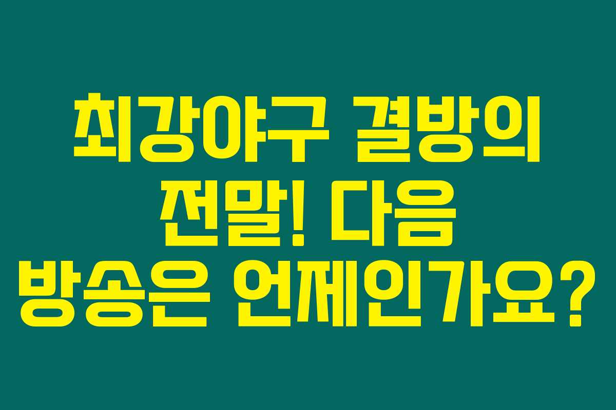 최강야구 결방 소식에 아쉬운 마음을 가진 팬들이 많을 텐데요. 결방이란 말은 마치 야구 경기 중 갑자기 비가 오는 상황과 같아요. 다음 방송일이 궁금하다면 아래를 읽어보시고 모든 뒷이야기를 확인해보세요!