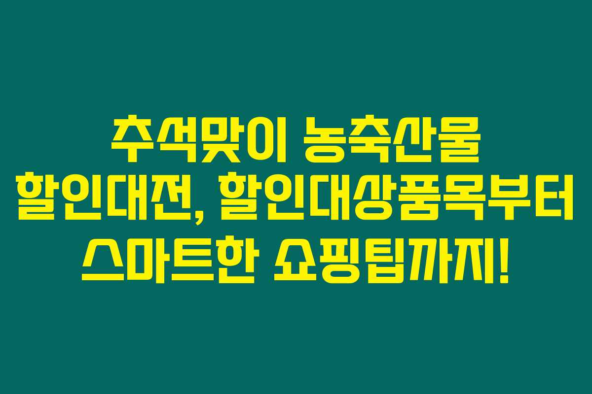 농축산물 할인대전 기간, 대상품목, 추가 혜택을 모두 고려하여 스마트한 쇼핑을 계획해 보세요. 여러분의 즐거운 쇼핑을 바라며, 필요하신 품목은 잘 준비해두세요!