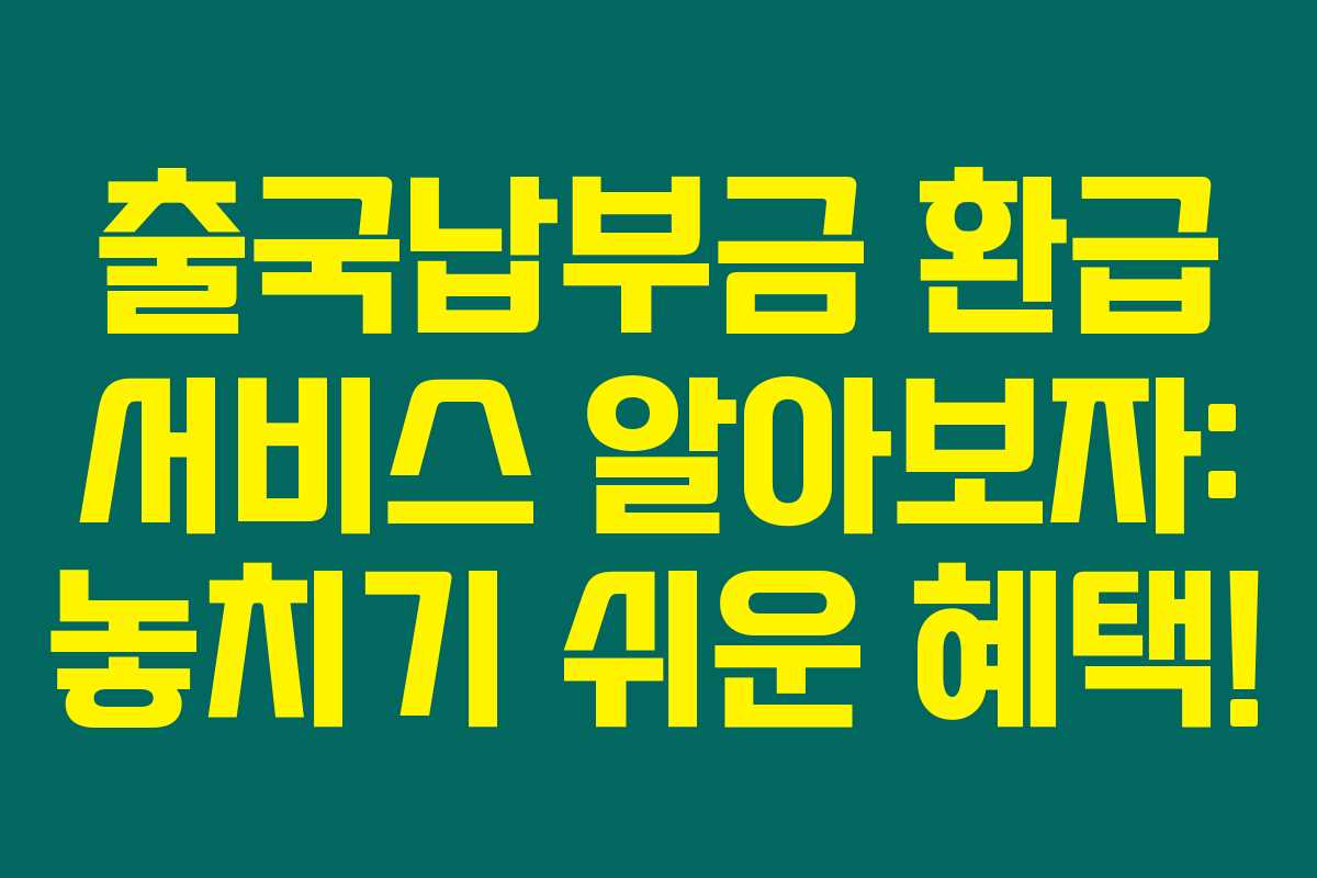 제가 직접 체크해본 바로는, 많은 사람들이 출국납부금 환급 서비스를 제대로 알지 못해 혜택을 놓치고 있더라고요. 특히, 항공권을 구매한 뒤 출국준비를 하는 과정에서 이 서비스에 대해 전혀 모르고 계신 분들이 많습니다. 아래를 읽어보시면 출국납부금 환급 서비스에 대한 정보와 혜택을 상세히 확인할 수 있을 거예요.