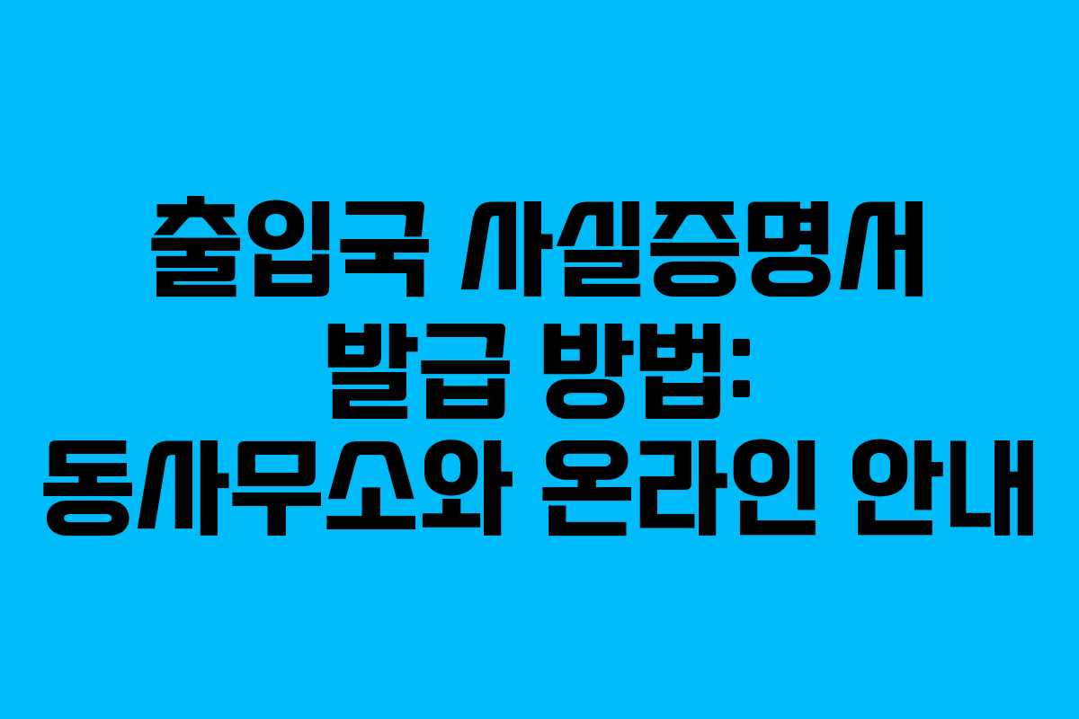 출입국 사실증명서 발급은 동사무소와 정부24에서 간편하게 진행할 수 있습니다. 각자의 상황에 맞는 방법을 선택하면 됩니다. 유의사항이나 필요한 서류를 미리 확인해 두면 더욱 수월하게 발급받을 수 있습니다.