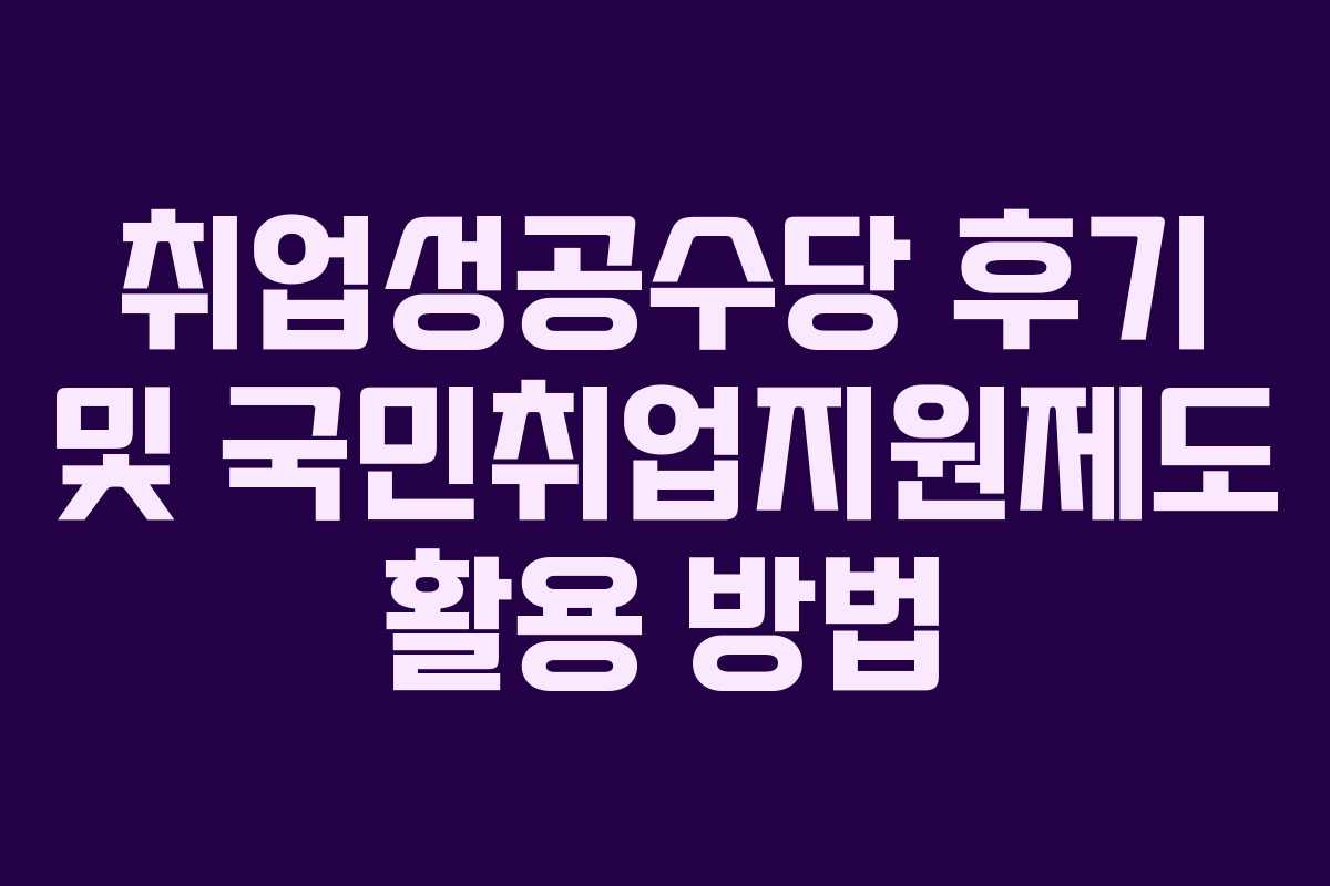 국민취업지원제도를 통해 취업에 성공한 경험과 취업성공수당에 대한 후기를 공유하고자 합니다. 이 제도를 통해 수많은 지원금을 받으며 취업 준비를 할 수 있었던 경험은 많은 분들에게 유용할 것입니다.