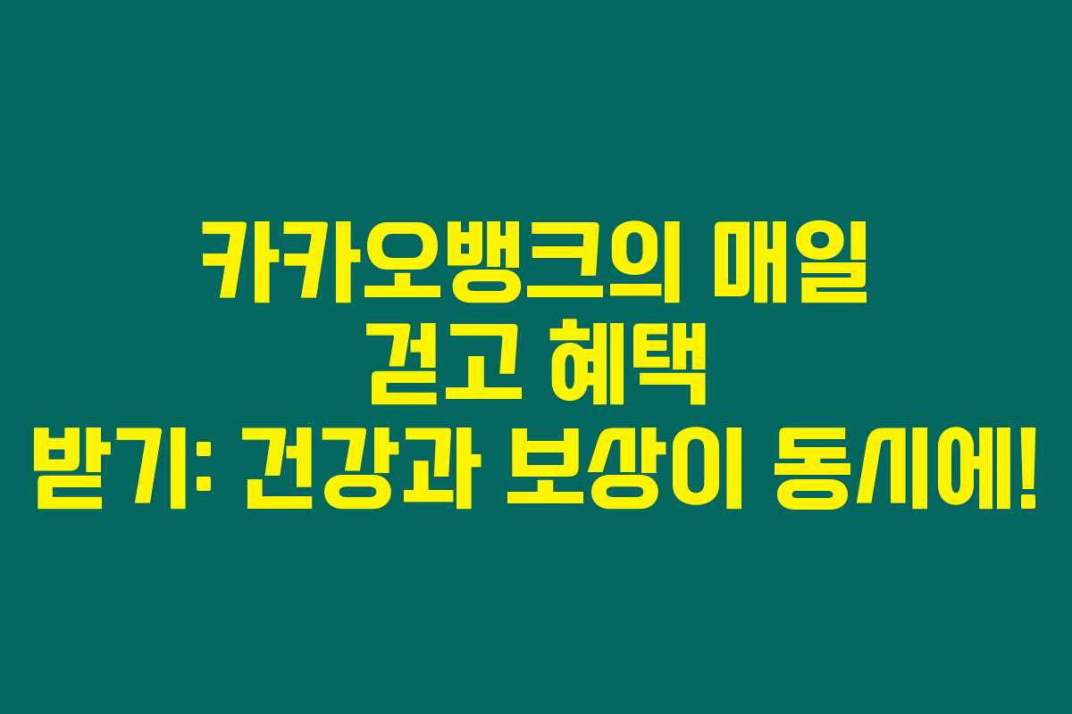 카카오뱅크의 매일 걷고 혜택 받기 프로그램은 단순한 걷기를 넘어, 건강과 재미, 보상을 동시에 누릴 수 있는 기회를 제공합니다. 매일매일 조금씩 걷는 습관이 건강한 삶을 만들어줄 거라고 믿어요.