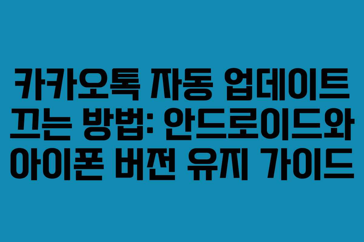 카카오톡은 많은 사람들이 일상적으로 사용하는 메신저 앱입니다. 하지만 최근 업데이트로 인한 UI 변화가 불편할 수 있습니다. 이러한 경우, 자동 업데이트를 끄고 현재 버전을 유지하는 방법이 유용할 수 있습니다. 이번 글에서는 안드로이드와 아이폰에서 자동 업데이트를 비활성화하는 방법과 관련된 주의사항을 안내합니다.