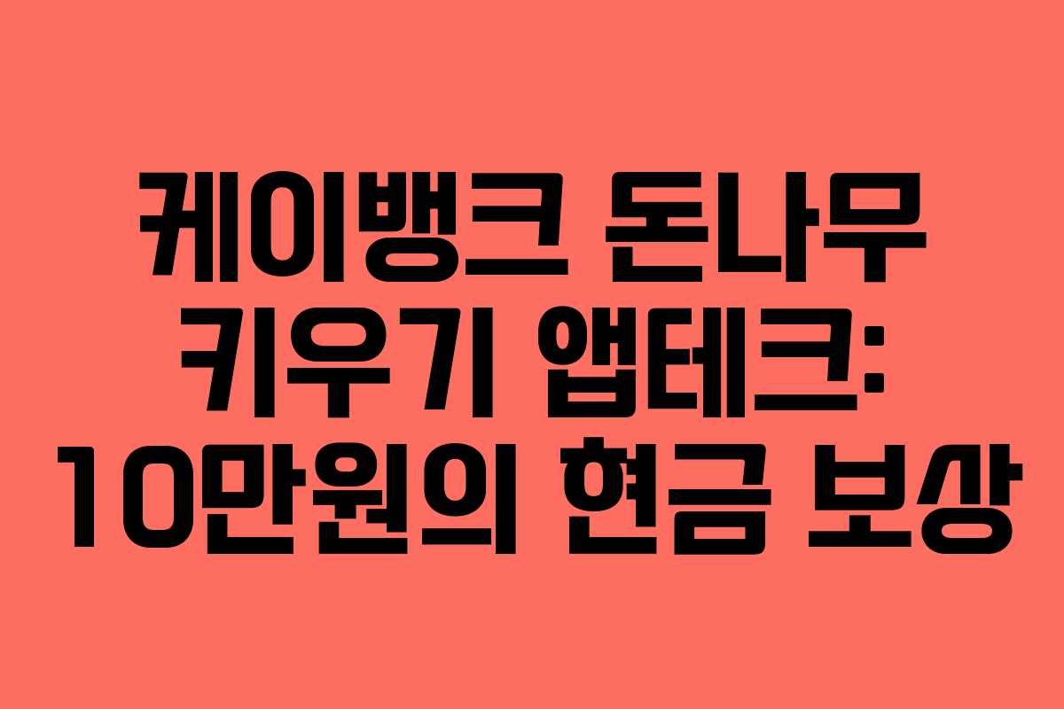 케이뱅크의 돈나무 키우기는 사용자가 출석 체크와 미션 수행을 통해 나무를 키우고, 그에 따른 현금 보상을 받는 구조로 되어 있습니다. 이 게임은 최대 10만원의 현금 리워드를 제공하여 사용자들에게 실질적인 수익을 가져다줍니다.