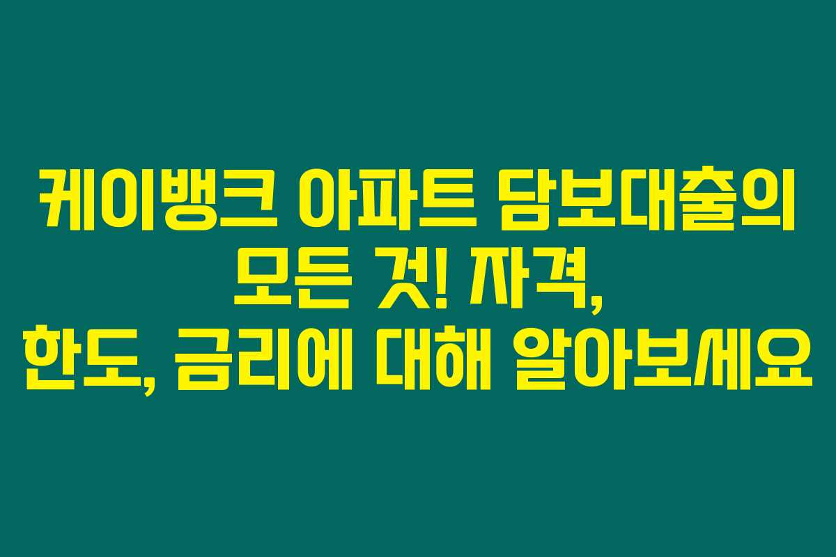 제가 직접 체크해본 바로는, 케이뱅크의 아파트 담보대출은 비대면으로 진행할 수 있어 매우 편리합니다. 아파트를 담보로 대출을 받을 수 있는 방법과 조건이 궁금한 분들을 위해, 대출 자격, 한도, 금리 등을 상세히 정리해 보았습니다. 아래를 읽어보시면 대출 신청에 대한 유용한 정보를 얻을 수 있을 것입니다.