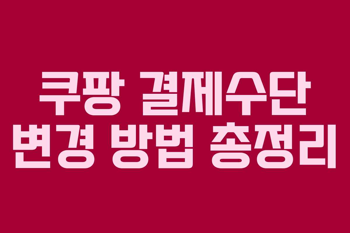 쿠팡에서 결제수단 변경을 통해 더욱 편리한 쇼핑을 경험하세요. 필요한 경우 고객센터에 문의하여 추가 도움을 받으실 수 있습니다.