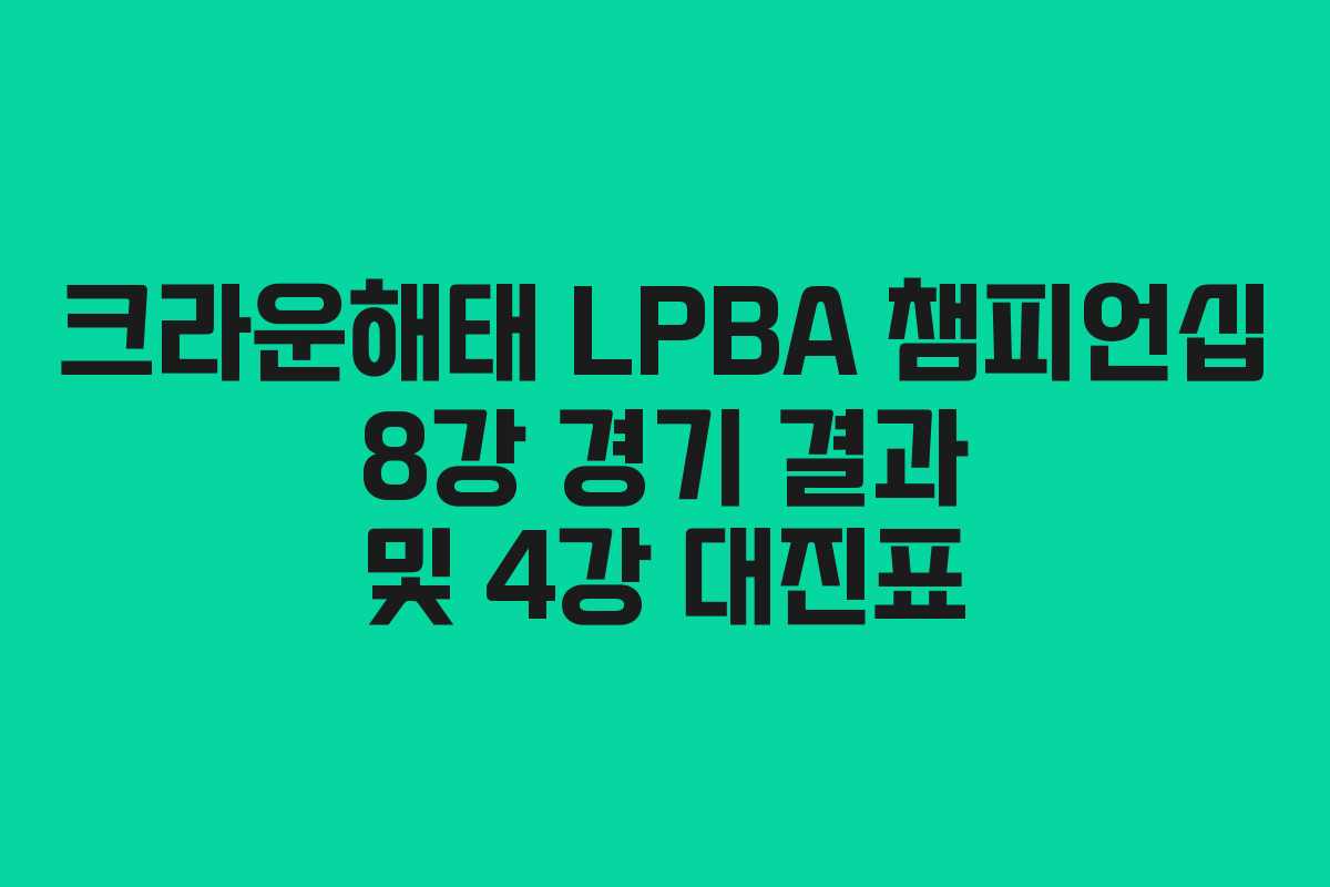 크라운해태 LPBA 챔피언십이 12월 7일부터 시작되어 8강 경기가 12월 11일에 진행되었습니다. 이번 대회는 여자 프로당구의 중요한 이벤트로, 많은 팬들의 관심을 받고 있습니다. 4강 대진표가 확정되면서 결승전으로의 기대감이 높아지고 있습니다.