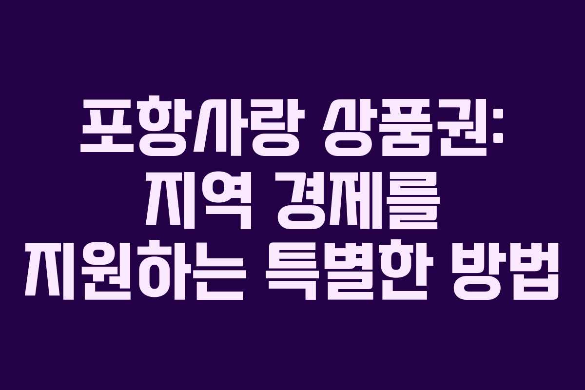 포항사랑 상품권은 포항시에서 개발한 특별한 상품권으로, 지역 경제 활성화와 사회 발전을 위해 설계되었습니다. 이 상품권은 지역 내에서 사용 가능하여, 지역 소상공인 및 중소기업을 지원하며 경제에 긍정적인 영향을 미칩니다.