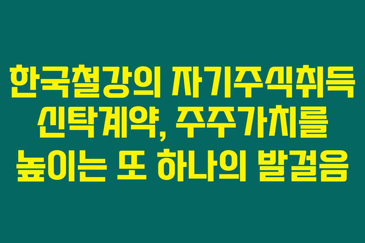 제가 직접 경험해본 결과로는 한국철강이 맺은 자기주식취득 신탁계약은 주주가치와 자금 운용의 효율성을 제고하기 위한 중요한 결정이라고 생각해요. 기업이 자기주식을 취득함으로써 주식 가격을 안정시키고, 주주에게 혜택을 제공하기 위해 추진한 이 계약에 대해 아래를 읽어보시면 자세한 내용을 알 수 있습니다.