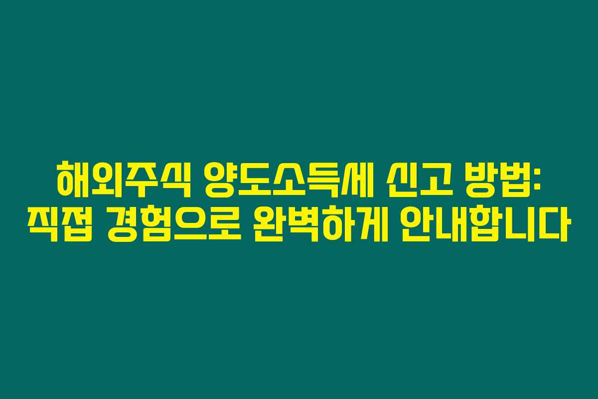 해외주식을 통해 이익을 얻은 경우, 양도소득세 신고는 매우 중요합니다. 제가 직접 경험해본 결과로는 이 과정을 무시할 경우, 예상치 못한 가산세와 불이익이 따를 수 있습니다. 아래를 읽어보시면, 해외주식 양도소득세 신고의 모든 과정을 단계별로 자세히 안내드리겠습니다.