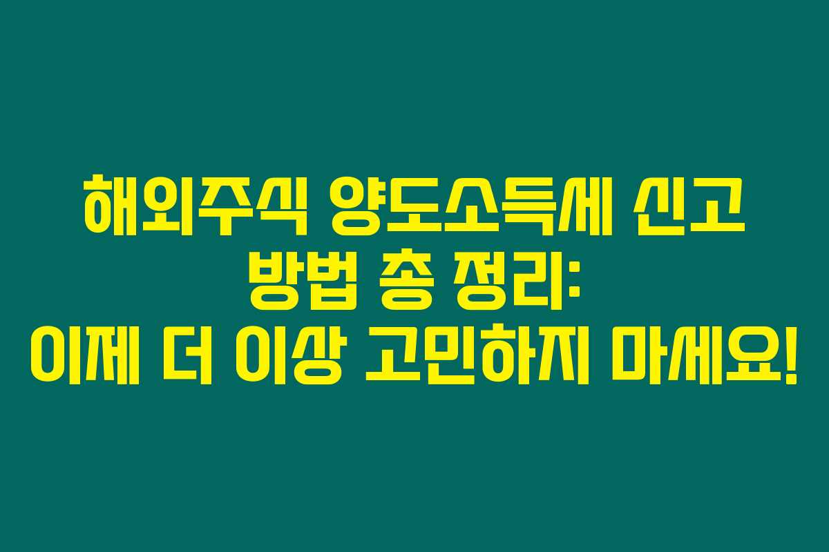 제가 직접 경험해본 결과로는 해외주식에 투자하는 분들 중에서 양도소득세 신고 방법을 아직 잘 모르는 분들이 많더라고요. 해외 주식에서 얻은 소득에 대해 세금을 어떻게 신고해야 하는지에 대한 내용을 아래를 읽어보시면 자세히 알 수 있습니다. 특히, 신고 방법과 세금 계산 방식에 대한 팁도 함께 담아봤으니, 참고해 주세요!
