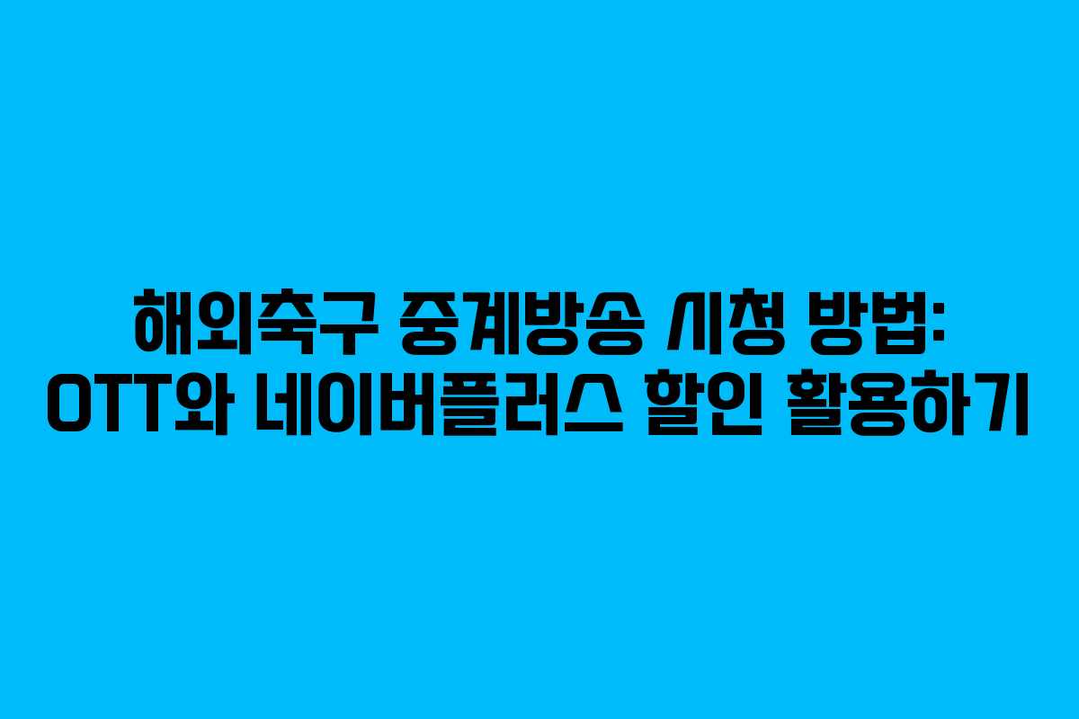 해외축구 중계방송을 시청하는 방법은 다양한 OTT 서비스와 할인 혜택을 통해 더욱 편리해졌습니다. 특히 한국 선수들이 뛰고 있는 리그의 경기를 놓치지 않기 위해서는 어떤 플랫폼을 통해 시청할 수 있는지 알아보는 것이 중요합니다.