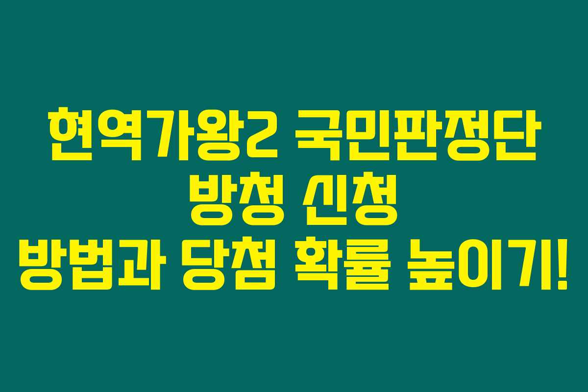 방청 신청을 통해 인기 트로트 오디션 프로그램의 국민판정단에 참여하고 싶으신가요? 이번 글에서는 현역가왕2의 방청 신청 절차와 당첨 확률을 높이는 다양한 팁을 정리해 보았습니다. 아래를 읽어보시면 신청 방법과 꿀팁이 자세히 설명되어 있으니 놓치지 마세요!