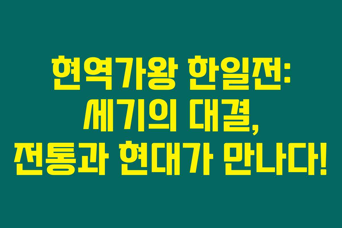 4월 2일, 현역가왕 한일전이 드디어 시작되었습니다! 한일 가수들의 자존심을 걸고 펼쳐지는 이 대결에서 어떤 흥미로운 순간들이 기다리고 있을까요? 본 글을 통해 한일전의 일정, 참가 가수들, 그리고 재방송 정보를 총정리했습니다. 아래를 읽어보시면 생생한 현장의 느낌을 느낄 수 있을 거에요!