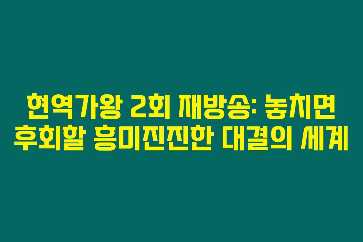 이렇게 흥미진진한 대결과 다양한 볼 거리가 가득한 현역가왕, 재방송으로 다시 확인해보세요. 다음 방송도 정말 기대되네요! 더 많은 정보를 원하신다면 계속해서 체크해 주세요!