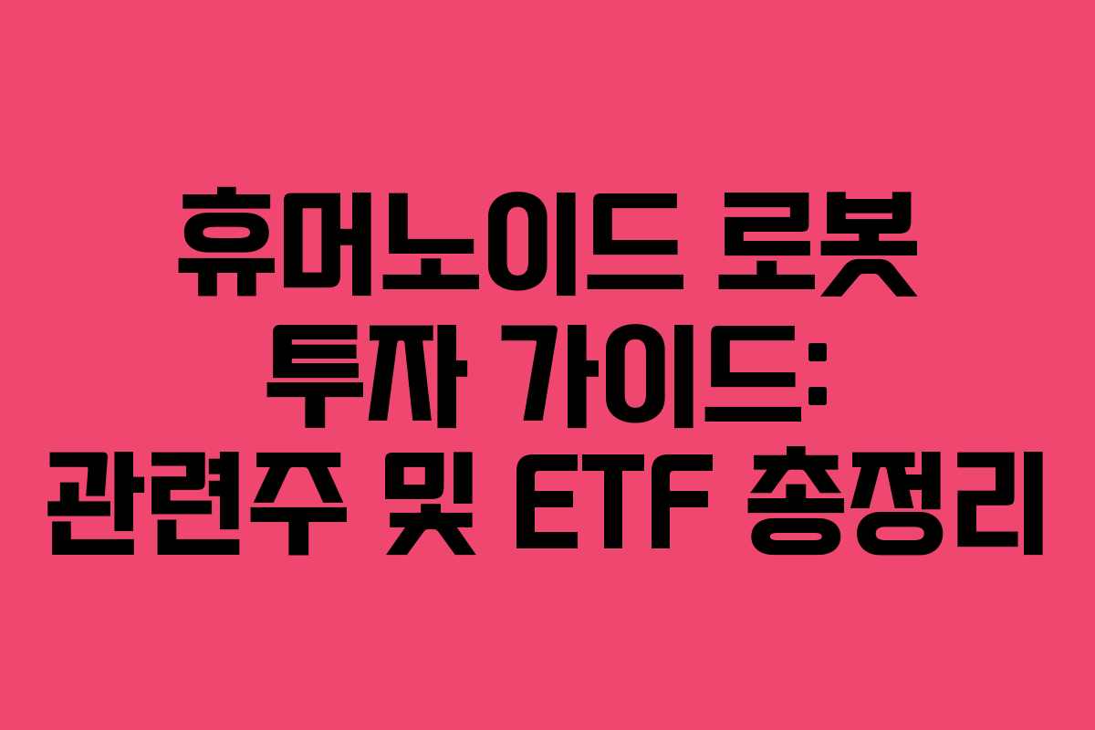 휴머노이드 로봇은 최근 인공지능(AI)과 로봇 기술의 혁신으로 주목받고 있습니다. 특히 미국 주식 시장에서 관련 기업 및 ETF에 대한 관심이 높아지고 있습니다. 이번 글에서는 휴머노이드 로봇 관련주와 ETF를 정리하여 투자에 유익한 정보를 제공하겠습니다.
