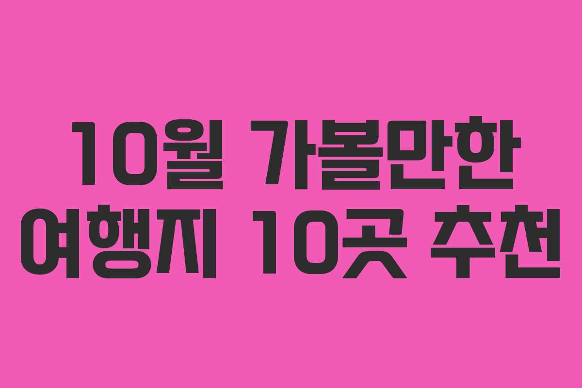 가을의 정취가 깊어지는 10월, 아름다운 자연과 함께하는 여행은 어떤가요? 이 시기에는 다채로운 꽃들과 풍성한 축제들이 열려, 잠시 일상에서 벗어나 힐링할 수 있는 기회를 제공합니다. 이번 글에서는 10월에 가볼 만한 국내 여행지 10곳을 추천합니다.