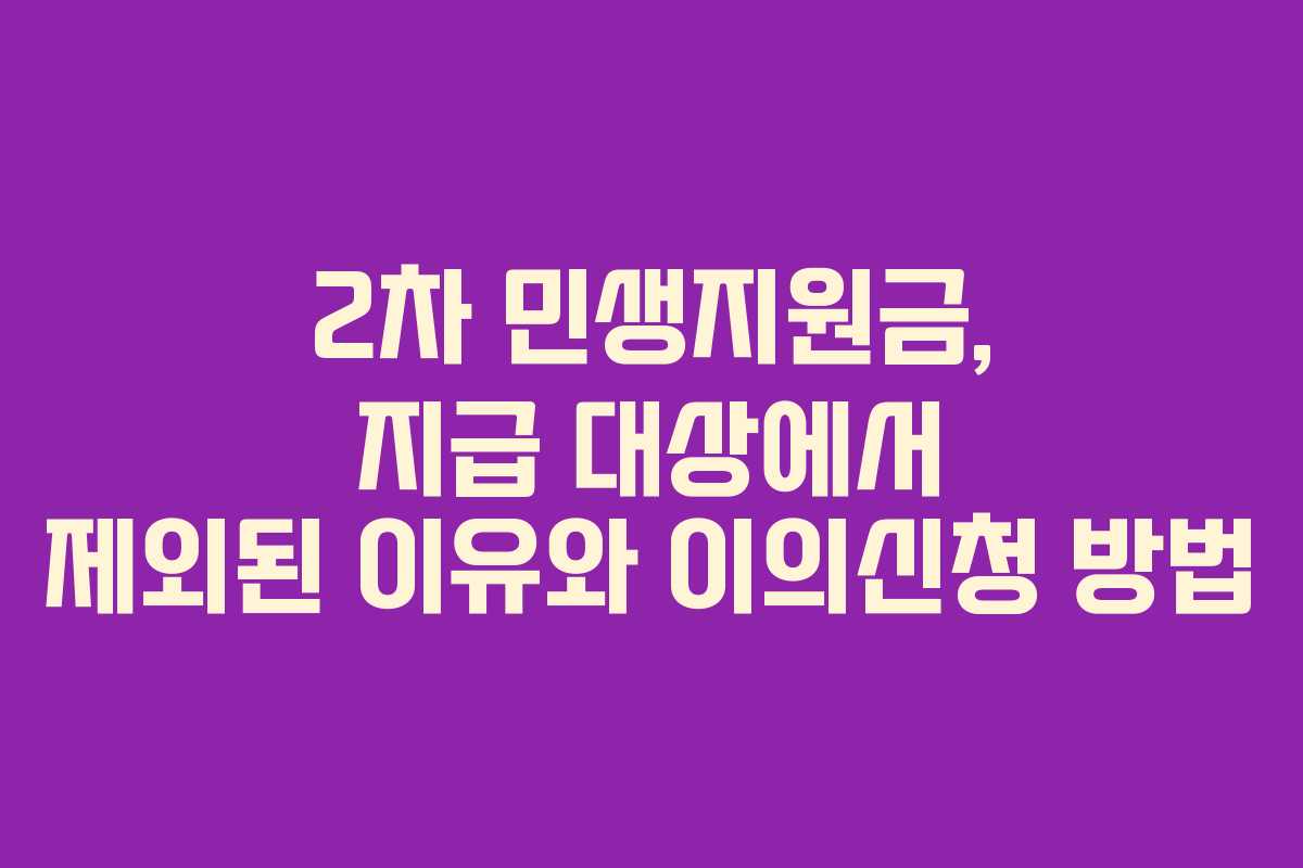 만약 본인이 지원 대상에서 제외되었다면, 이의신청을 할 수 있습니다. 먼저 건강보험료, 재산세, 금융소득 정보를 확인한 후, 지정된 이의신청 기간 내에 주민센터나 온라인을 통해 관련 서류를 제출하면 재심사를 받을 수 있습니다. 자신의 권리를 찾기 위해 포기하지 말고 꼭 이의신청을 진행하시기 바랍니다.