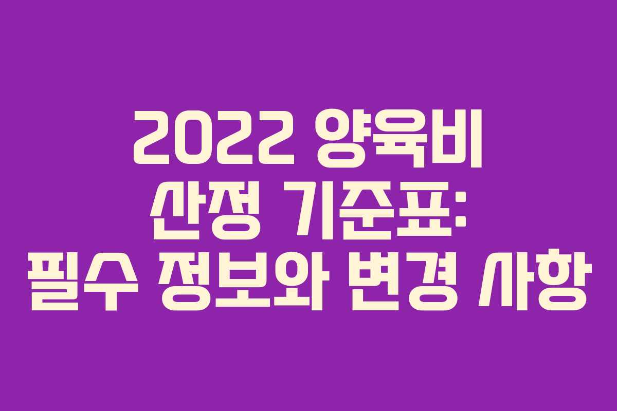 2022년의 양육비 산정 기준표는 이혼 후 자녀 양육과 관련하여 매우 중요한 요소입니다. 이 글에서는 양육비 산정 기준표의 개정 이유와 양육비 지급의 중요성을 설명하겠습니다.