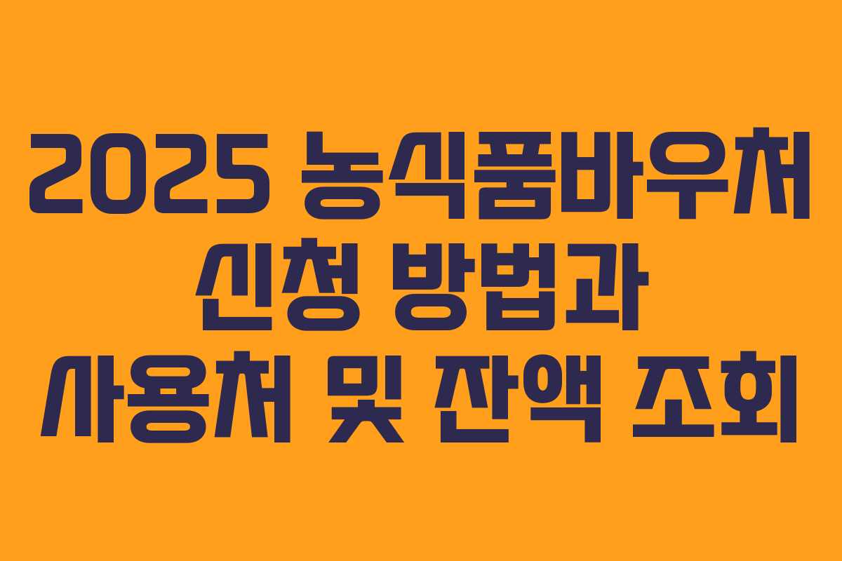 2025년부터 시행되는 농식품바우처 제도는 저소득층과 취약계층이 신선하고 안전한 농식품을 구매할 수 있도록 돕는 프로그램입니다. 농식품바우처의 신청 방법, 사용처 및 카드 잔액 조회 방법에 대해 자세히 알아보겠습니다.