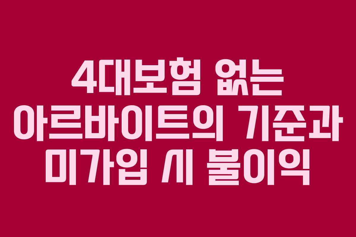 아르바이트를 하면서 4대보험 가입 여부에 대해 궁금해하는 분들이 많습니다. 4대보험이란 국민연금, 건강보험, 고용보험, 산재보험을 포함하며, 근로자와 사업자 모두에게 중요한 제도입니다. 이번 글에서는 4대보험에 가입하지 않은 아르바이트의 기준과 미가입 시 발생할 수 있는 불이익에 대해 살펴보겠습니다.