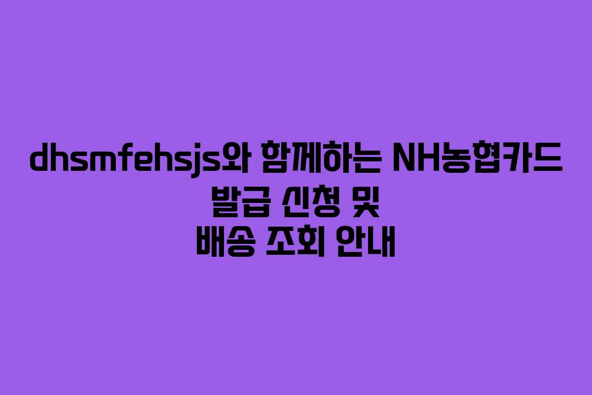 아래를 읽어보시면 dhsmfehsjs와 연계된 NH농협카드 발급 절차 및 배송 조회 방법을 한눈에 파악할 수 있습니다. 신청 준비에서부터 발급 현황, 배송 추적까지 필요한 정보를 간결하게 정리했습니다.