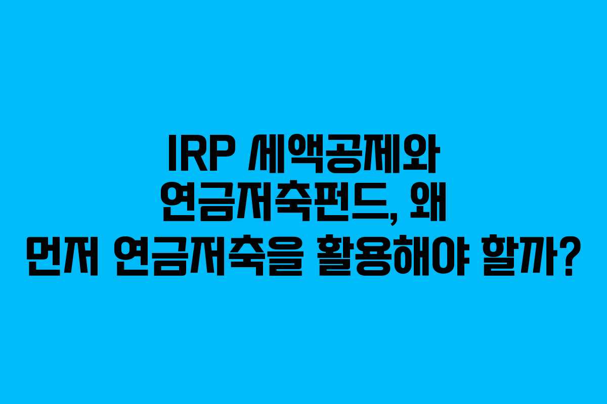 IRP는 제한된 투자 상품에만 접근할 수 있지만, 연금저축은 다양한 ETF와 펀드에 투자할 수 있어 장기적으로 높은 수익을 기대할 수 있습니다. 이로 인해 연금저축을 먼저 활용하는 것이 추천됩니다.