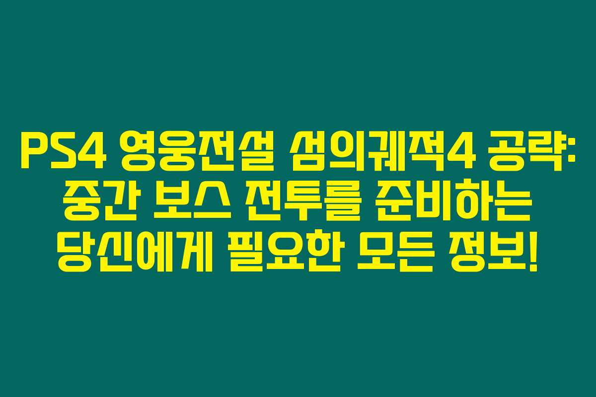 여러분 혹시 PS4 게임 중에서 영웅전설 섬의궤적4를 하시는지요? 사실 이 게임에 들어가다 보면 중간 보스 전투가 만만치 않다는 것을 아실 거에요. 중간 보스인 ‘중장 마황병 다이나 골룸’과의 전투에서는 준비가 중요하답니다! 가슴 뛰는 이 시점에 필요한 공략 정보를 아래를 읽어보시면 몹시 유용할 것 같아요.