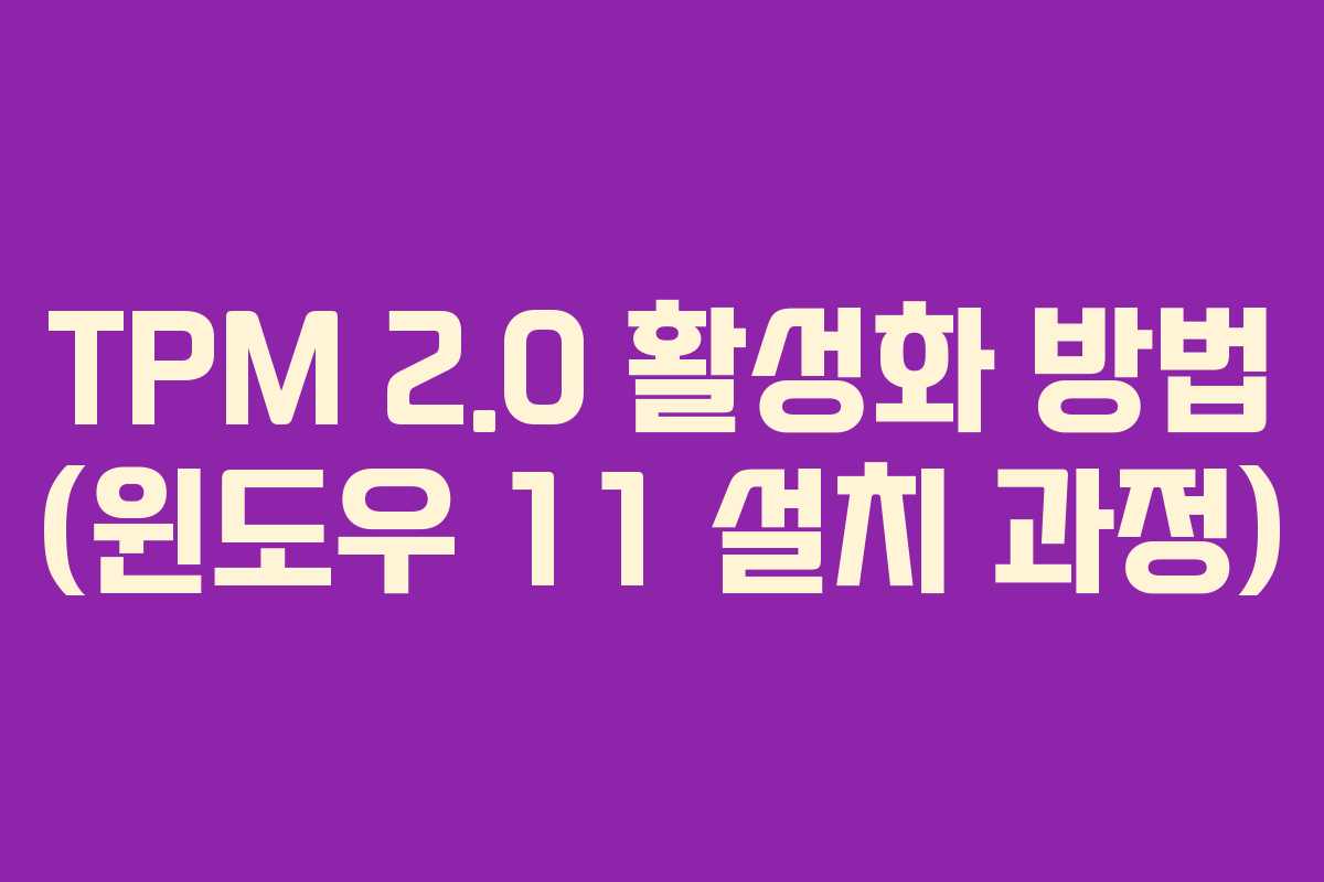 윈도우 11로의 업그레이드를 위해서는 TPM 2.0의 활성화가 필수적입니다. TPM(Trusted Platform Module)은 보안 기능을 담당하는 하드웨어 칩으로, 컴퓨터의 데이터 보호를 위해 중요한 역할을 합니다.